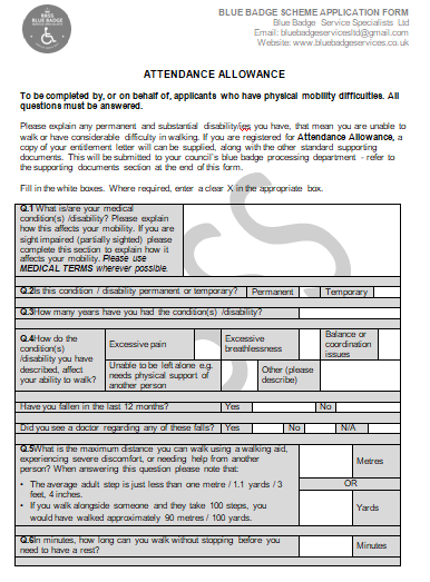 Attendance Allowance Blue Badge Application Form AND Submission Service