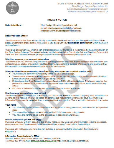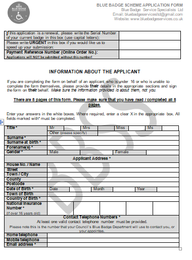 *** PLEASE NOTE THE APPLICATION FORM PRICE INCLUDES OUR SAME DAY BLUE BADGE SUBMISSIONS SERVICE ***